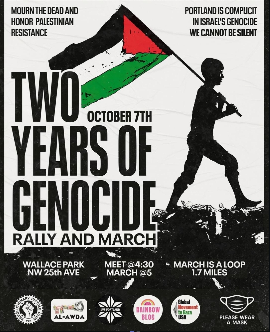 We are organizing a rally and march to mourn the dead and honor Palestinian resistance. Portland is critiqued for complicity, and we aim to bring awareness and action through this event.