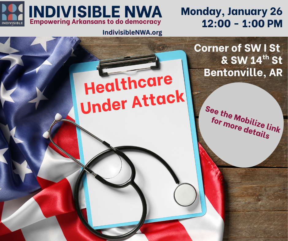 Join us in Bentonville to raise awareness and advocate for healthcare rights. Organized by Indivisible NWA.