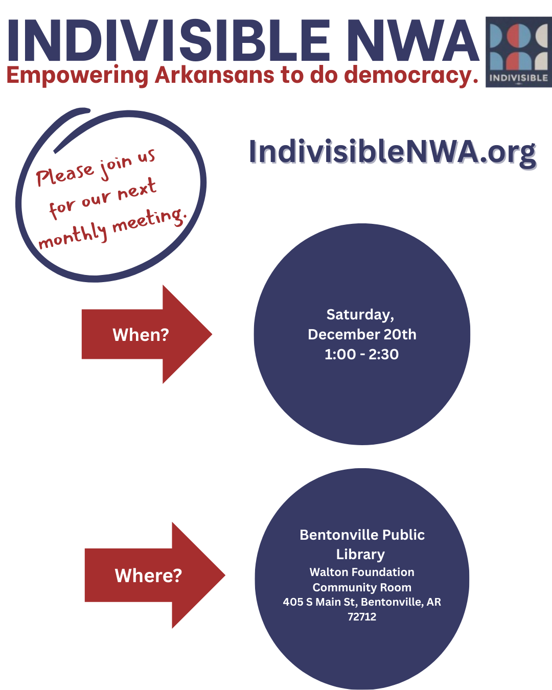 Join us for our next monthly meeting aimed at empowering Arkansans to participate in democracy.